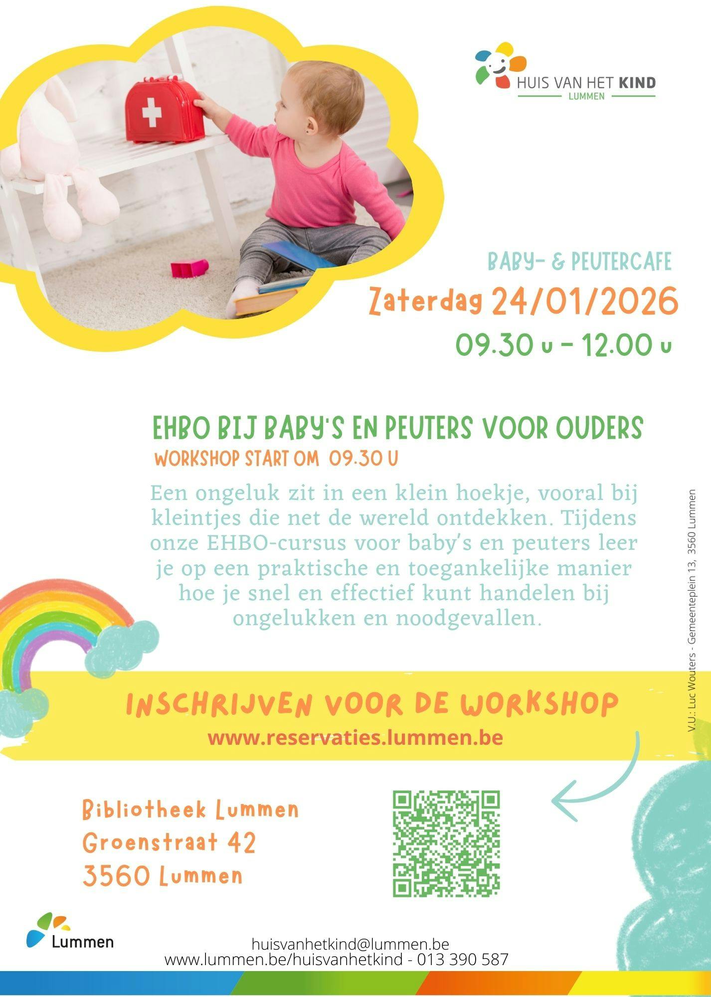 Een ongeluk zit in een klein hoekje... Jonge kinderen brengen kleine en grote zorgen met zich mee. Koorts, een wespensteek, geschaafde knie of bloedneus kan bij ieder kind voorkomen. Maar wat doe je als ouder in dat geval? Moet je meteen naar de arts of kan je zelf actie ondernemen? In deze interactieve workshop leer je allerhande tips en tricks om met kleine ongelukken maar ook bedreigende situaties bij jonge kinderen om te gaan. Deze workshop wordt gegeven door een ervaren vroedvrouw van het Wit-Gele Kruis Limburg.