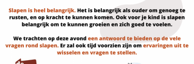 22 mei: Info-avond 'Slaap kindje slaap' - 12 mei 2023Slapen is heel belangrijk. Het is belangrijk als ouder om genoeg te rusten, en op kracht te kunnen komen.