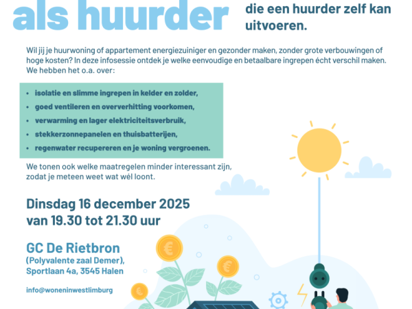 Op 16 december 2025 organiseert Wonen in West-Limburg  samen met Dialoog VZW een infosessie specifiek voor huurders met het oog op betaalbare ingrepen die een huurder zelf kan uitvoeren.