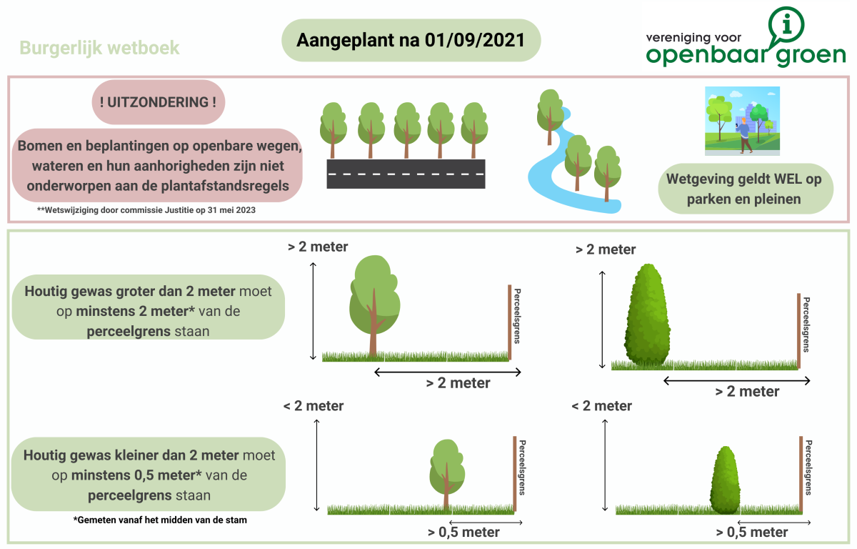 Plantafstanden Informatie betreffende de wetgeving over plantafstanden, overhangende takken en doorgroeiende wortels kan je hier vinden. Plantafstand Overhangende takken Doorgroeiende wortels