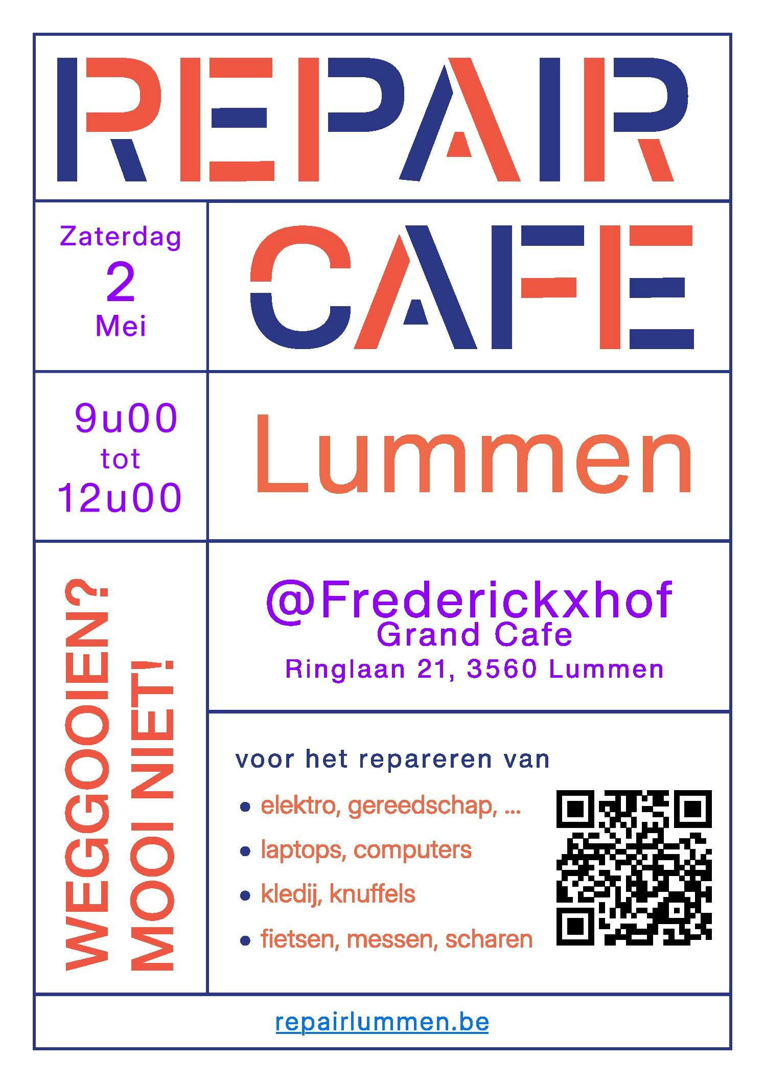 Op zaterdag 2 mei staan we terug voor jullie klaar met ons Repair Café op onze vaste plek in het Grande Café van het Frederickxhof. Vanaf 9u00 ben je welkom om samen met onze ervaren vrijwilligers jouw spullen te komen repareren! We sluiten af vanaf 12u00 en werken af waar we aan begonnen zijn tot maximaal 13u00.