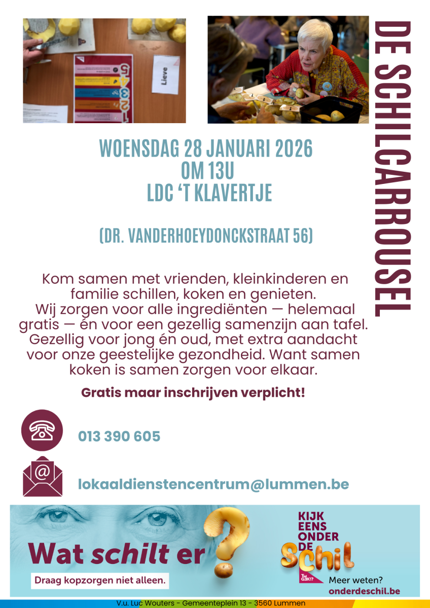 Graag inschrijven via lokaal dienstencentrum 't Klavertje: